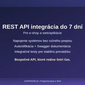 Ručný prepis objednávok a dát vás stojí čas, chyby a zbytočné náklady? Navrhnem a nasadím REST API integráciu overenú v enterprise projektoch, vrátane testovateľnosti a bezpečného prístupu. Dostanete: API endpointy, autentifikáciu, Swagger dokumentáciu, logovanie, validačné pravidlá a integračné testy pre stabilnú prevádzku. Napíšte hneď.